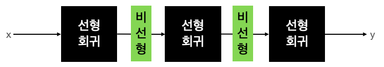 기존 방식의 선형 회귀를 여러 번 사용한다고 해서 비선형이 되지는 않아요.