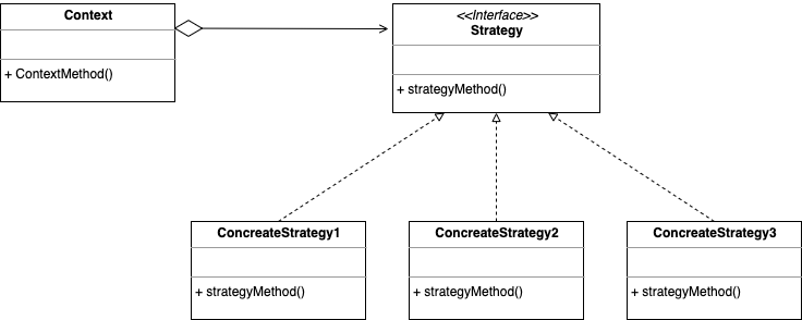 아주 간단히 말하자면 무엇을 할지에 따라 사용할 알고리즘Strategy을 갈아끼우는 방식으로 이해할 수 있습니다. 전략 패턴은 특정 알고리즘에 종속되어 동작하지 않으며, 언제든지 알고리즘을 변경해서 적용할 수 있습니다. 실제 내부 동작을 외부 알고리즘 객체Strategy로 분리하여 유연하게 동작을 변경시킬 수 있습니다.