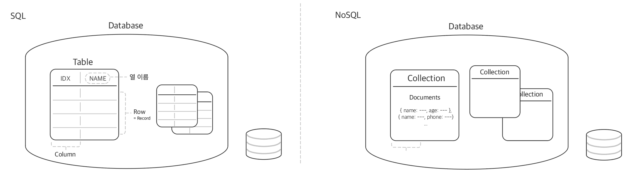 Collection은 SQL에서의 Table과 동일한 의미를 지닙니다. 데이터들의 이름표죠.