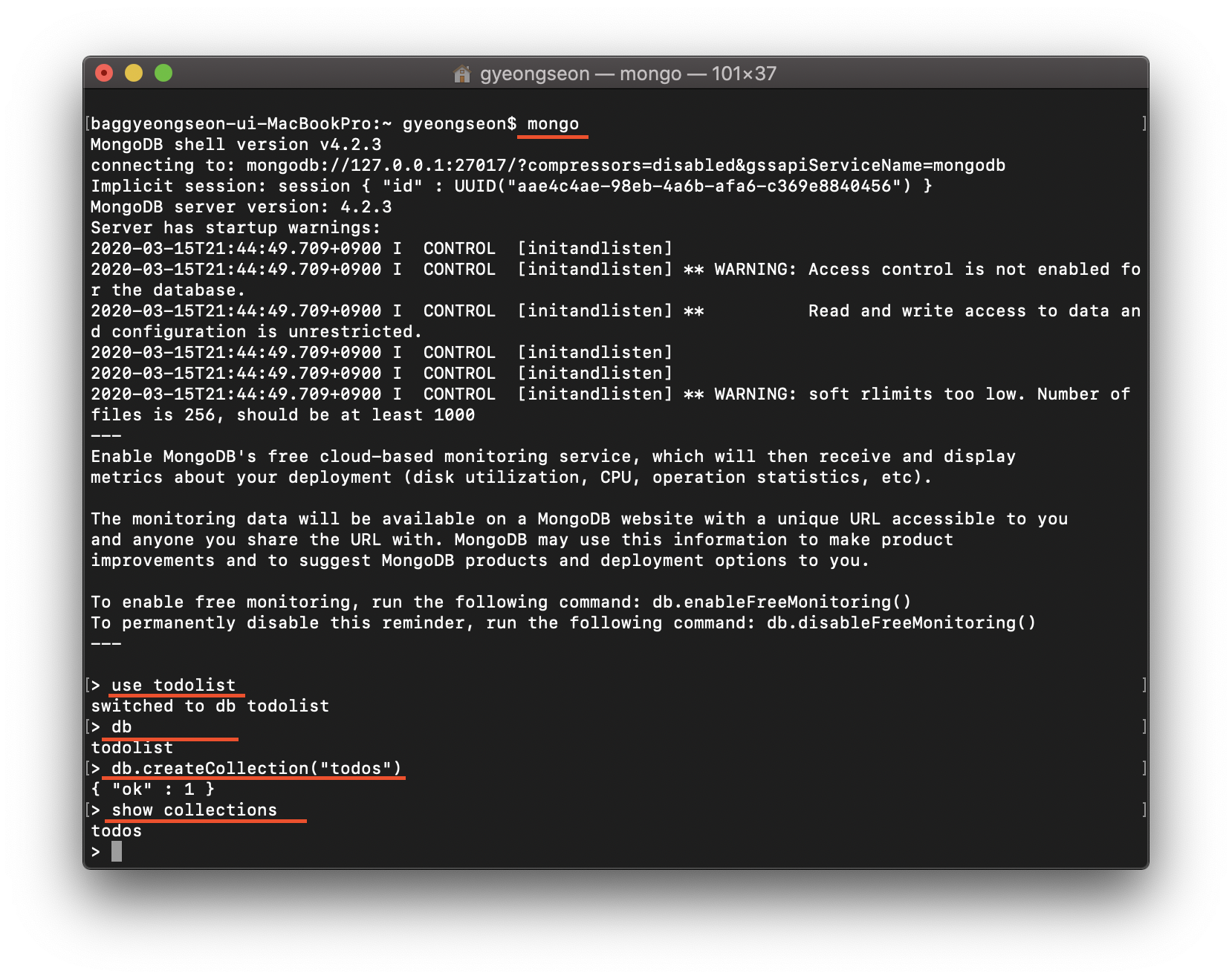 > db.createCollection("todos")
