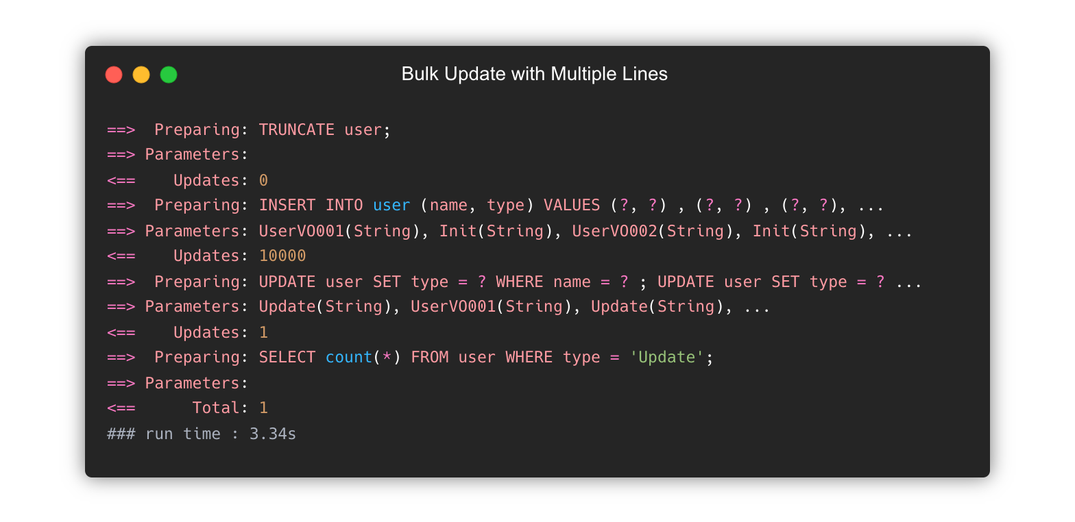 <update id="bulkUpdateMultiLine" parameterType="com.gngsn.demo.bulkUpsert.UserVO">