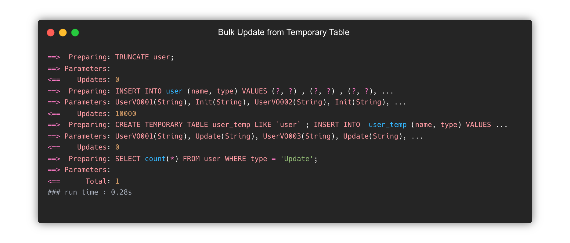 <update id="bulkUpdateFromTempTable" parameterType="com.gngsn.demo.bulkUpsert.UserVO">