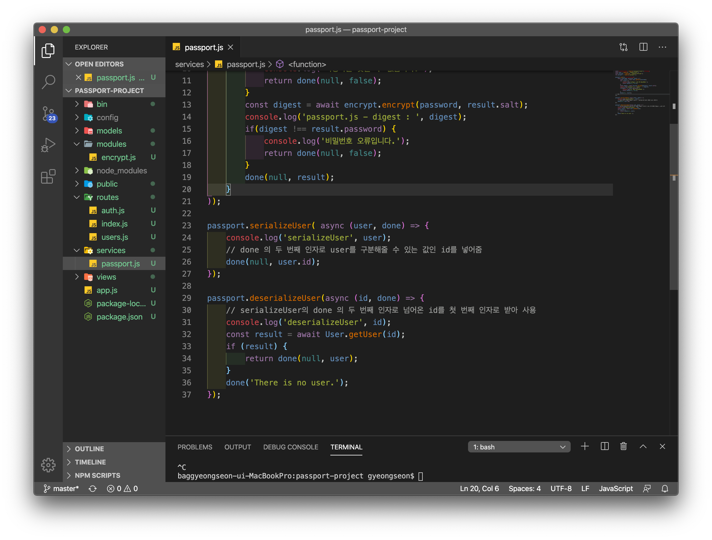 이번엔 app.js에서 passport 사용을 제대로 시작해보겠습니다.