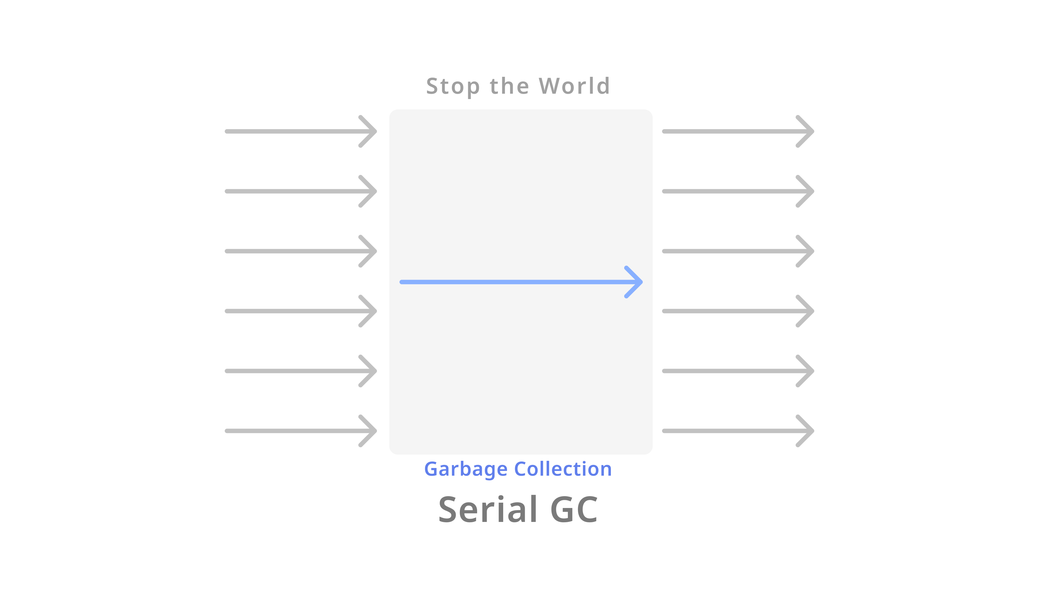 Serial GC는 단 하나의 스레드를 가지고 Garbage Collection을 진행합니다. 오직 하나의 스레드를 사용하기 때문에 Stop the World 대기 시간이 상당히 오래걸립니다. Serial GC는 싱글 스레드의 Heap 사이즈가 꽤 작았을 때 등장했습니다.