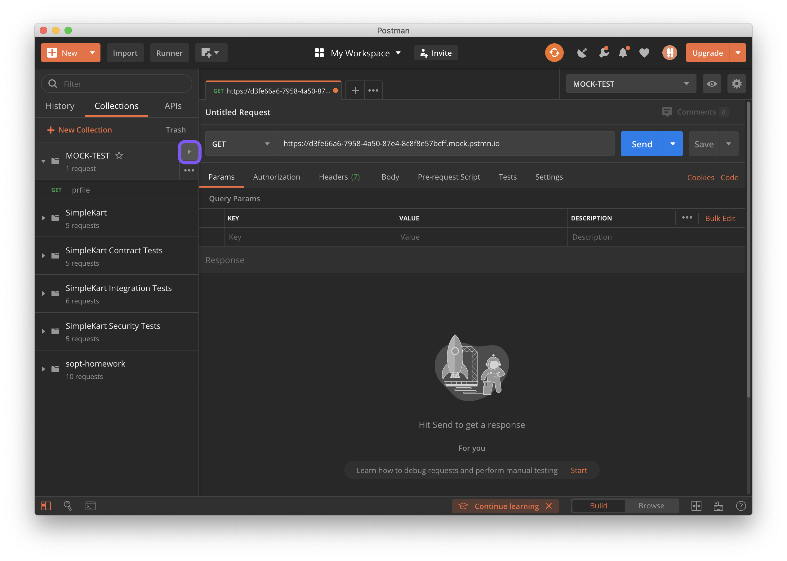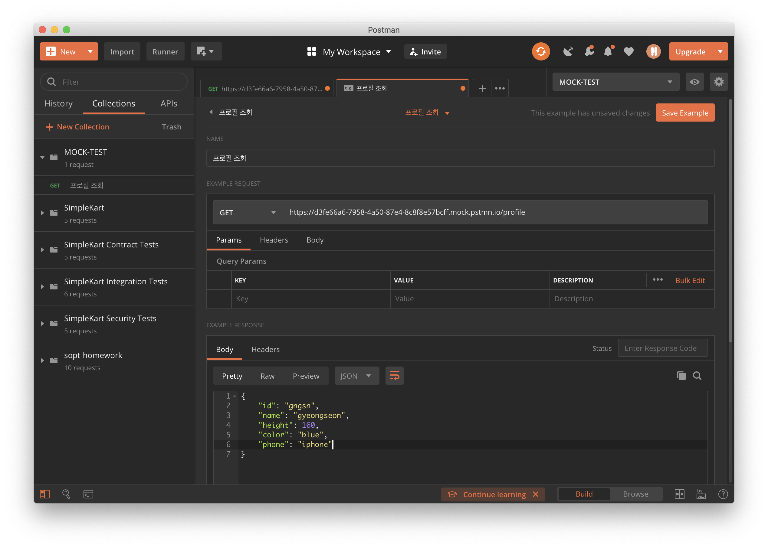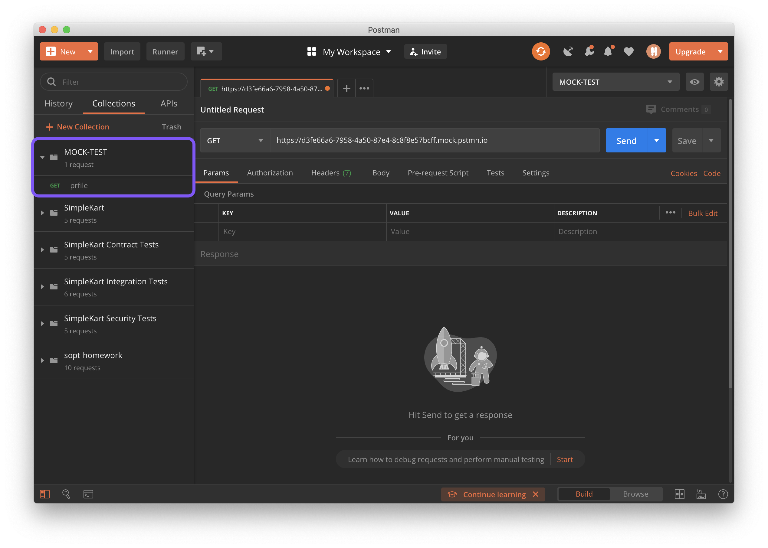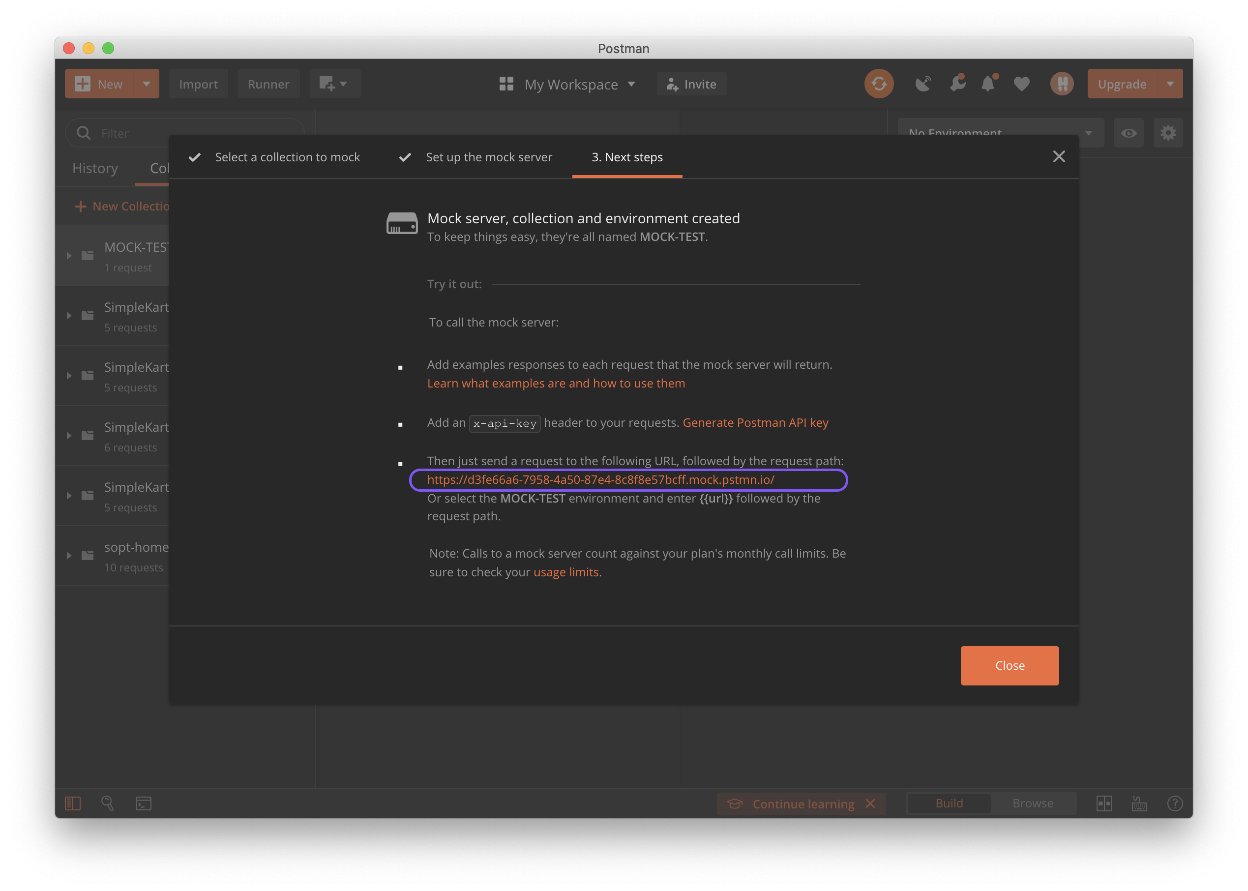 위에 보이는 주소가 만들어진 mock-server의 URI입니다!