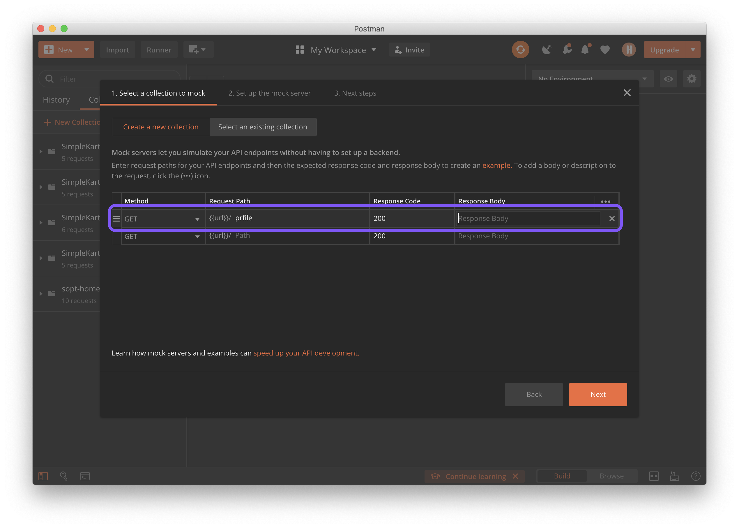이름을 정했다면 Create Mock Server 를 선택해주세요 !