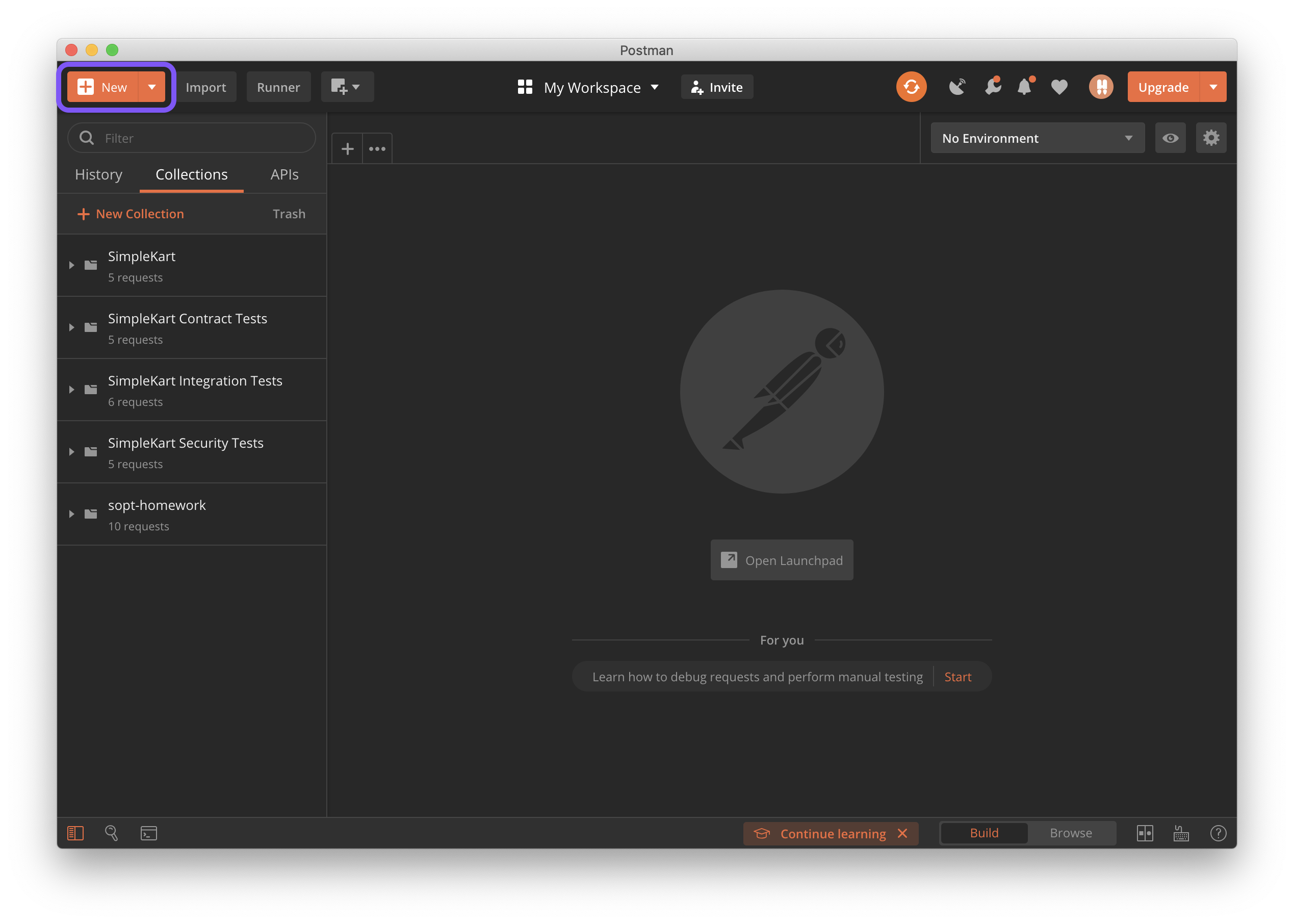 좌측 상단을 보시면 'New' 버튼이 있습니다.