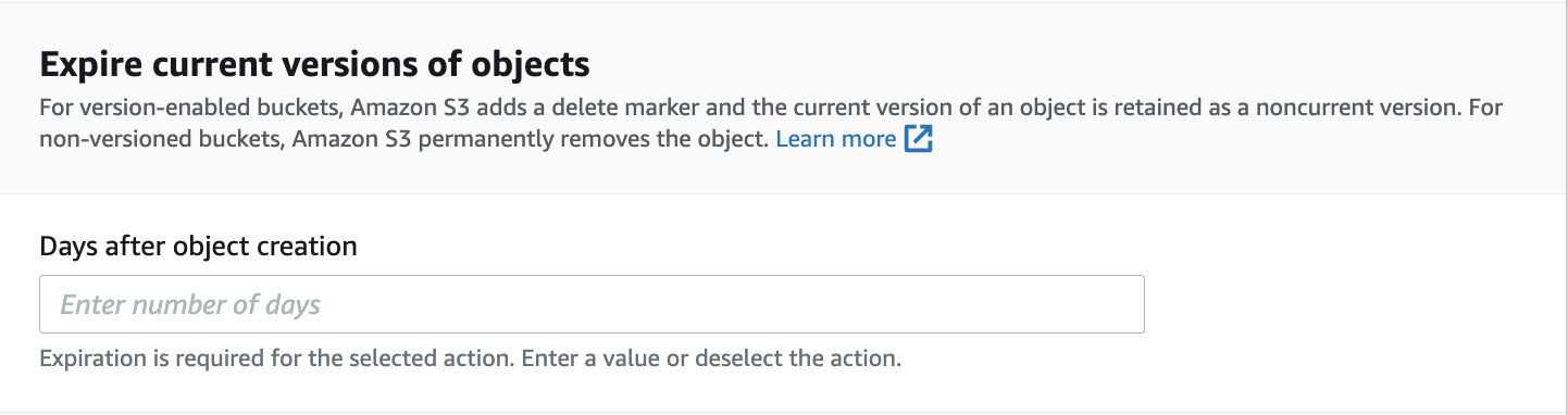 Expire current versions of objects 옵션을 선택하게 되면 아래와 같은 섹션이 생깁니다.