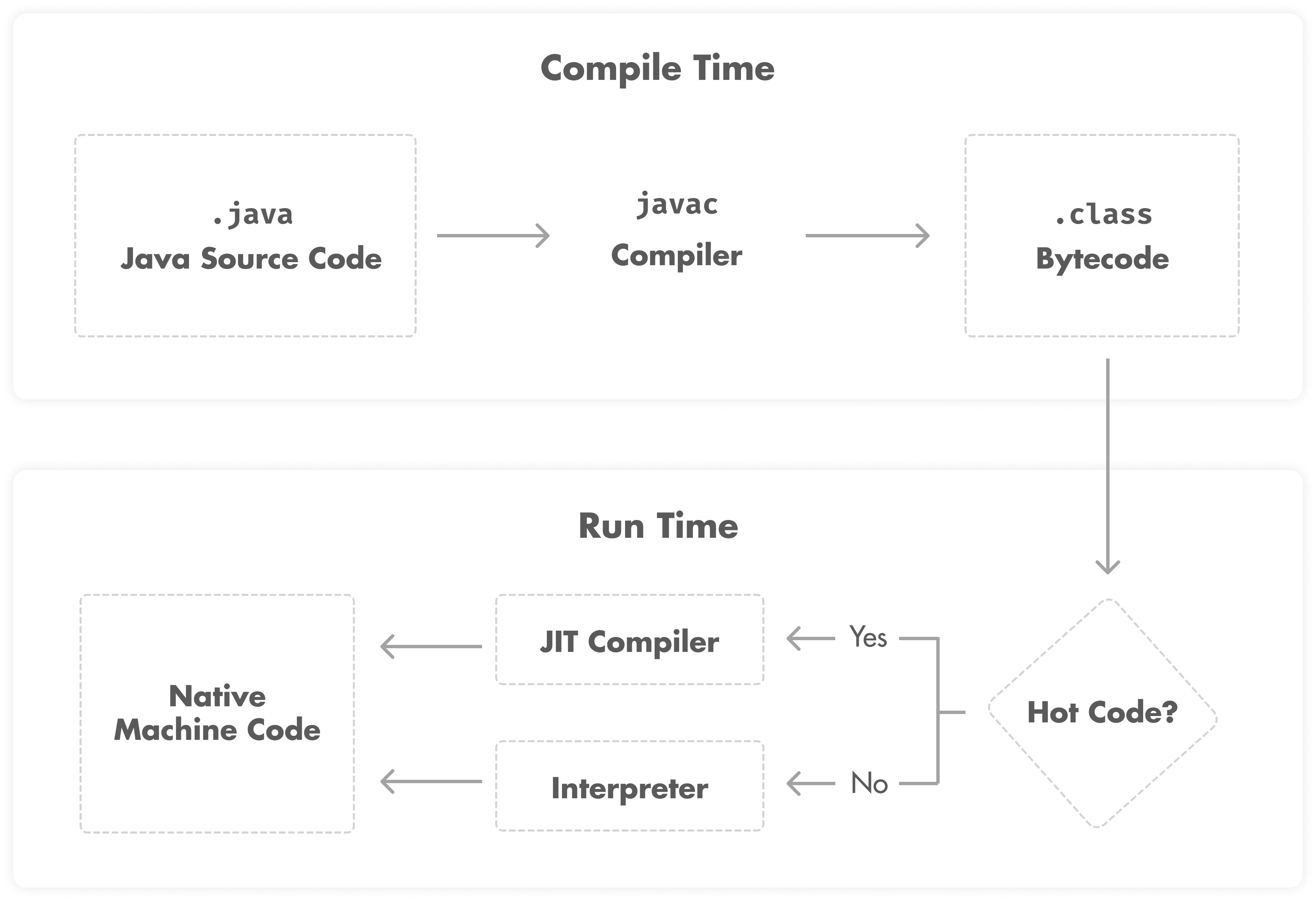 이를 통해 Java 파일을 컴퓨터가 실행할 수 있는 코드로 변환되고 실행되는 과정을 살펴보도록 합시다.
