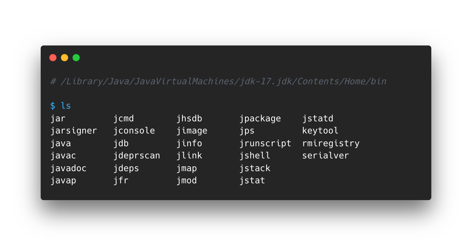 실제 Jdk bin 디렉토리를 확인해보면 아래와 같은 도구들을 확인할 수 있습니다.