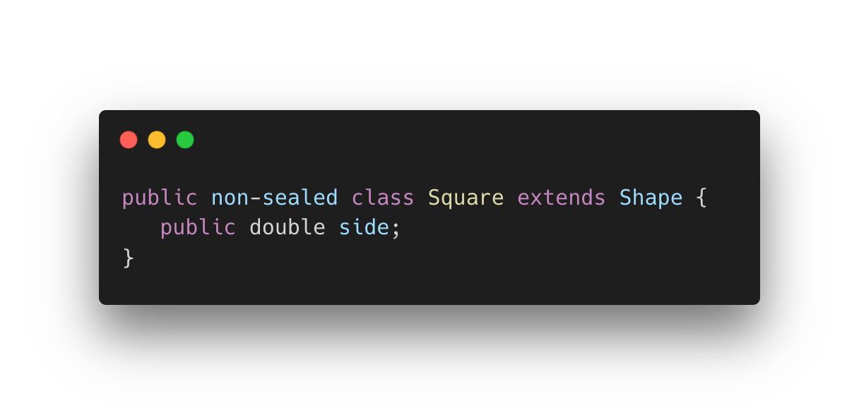 - non-sealed – 확장에 열린 상태로 정의