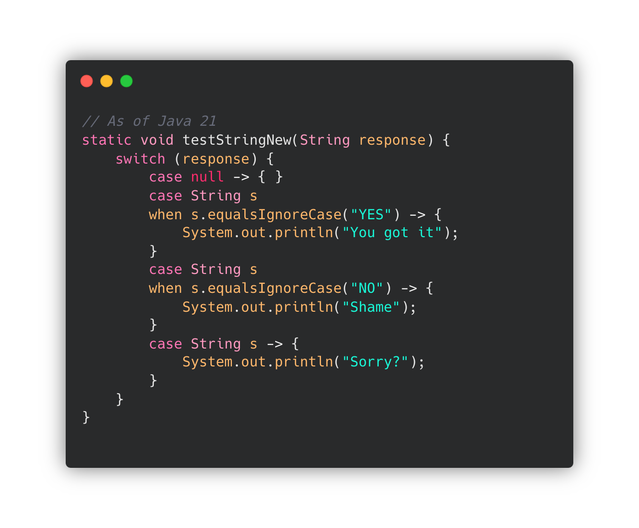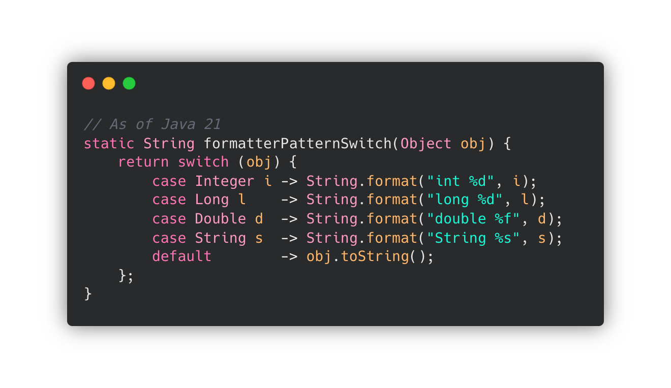 🔗 JEP 441: Pattern Matching for switch