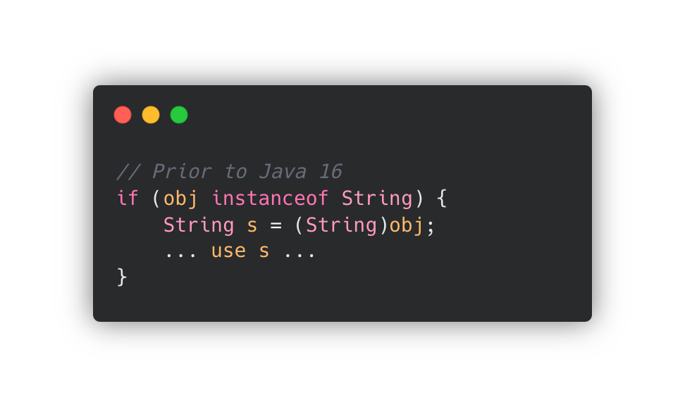 JDK 16인 왼쪽 코드와 동일한 의미가 되죠.