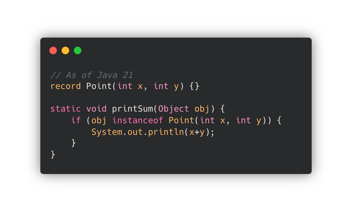 JDK 21 에서는 Records Patterns를 제공합니다.