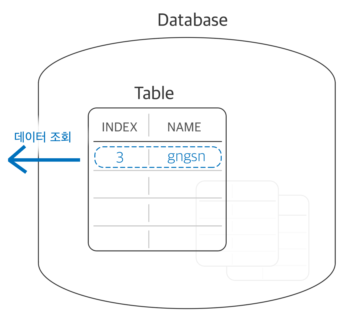 제가 만약, 데이터베이스 중 user이라는 이름을 가진 테이블을 조회하고 싶을 때에는 어떻게 할까요?