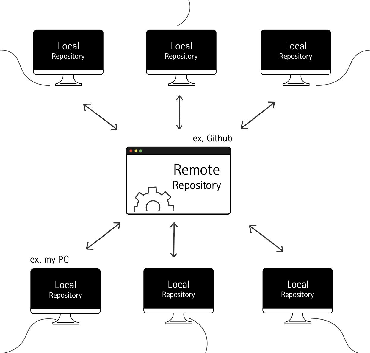 Github로 예를 들면 Github내에서 만들어진 Repository가 바로 원격 저장소가 됩니다.