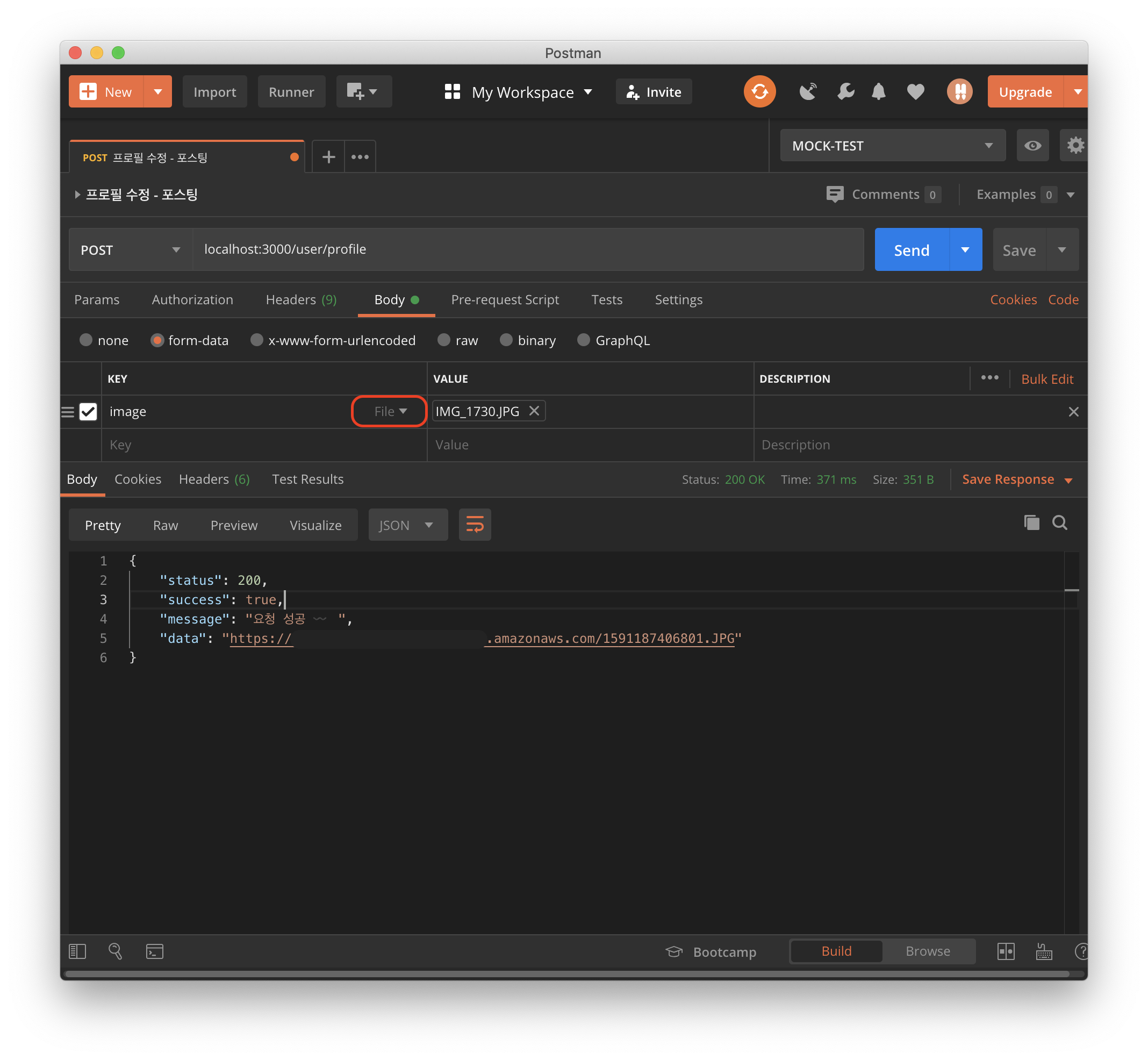 파일을 보낼 때에는 form-data 탭에서 보내는 거, 잊지 않으셨죠❓