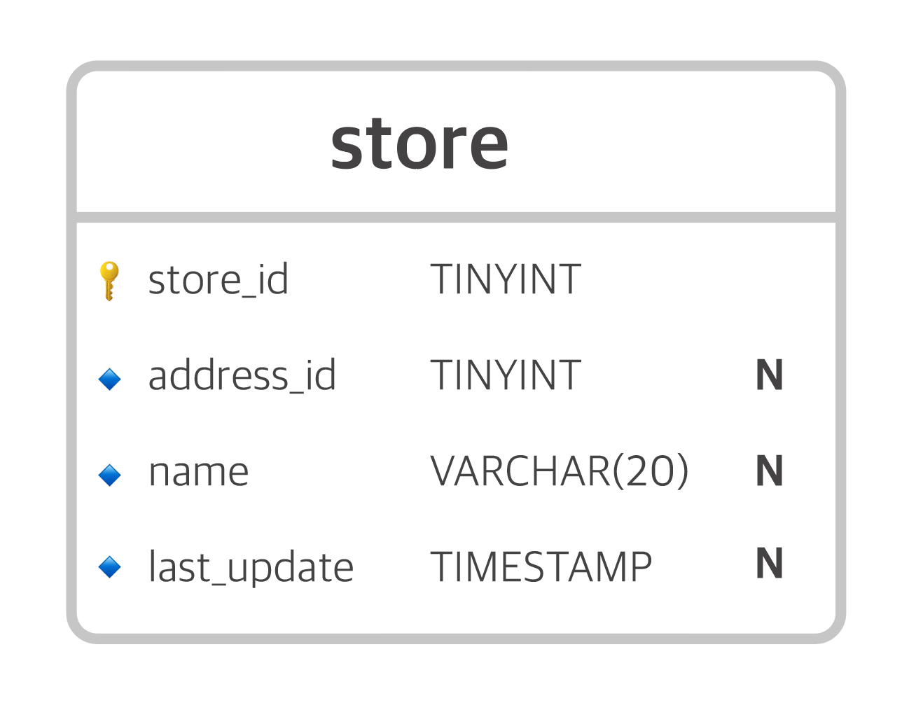 inventory 개체가 없어도 store 개체는 있을 수 있고, store 개체가 없다면 inventory 개체도 있을 수 없습니다.