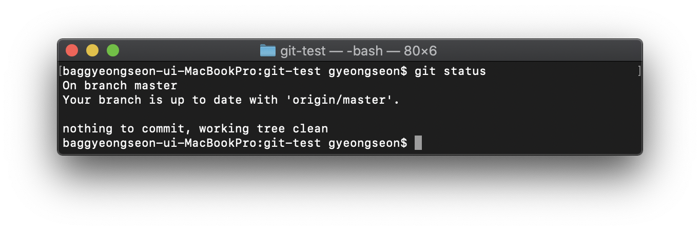 아무런 작업이 이루어지지 않으면 nothing to commit, working tree clean이라는 문구를 출력합니다.