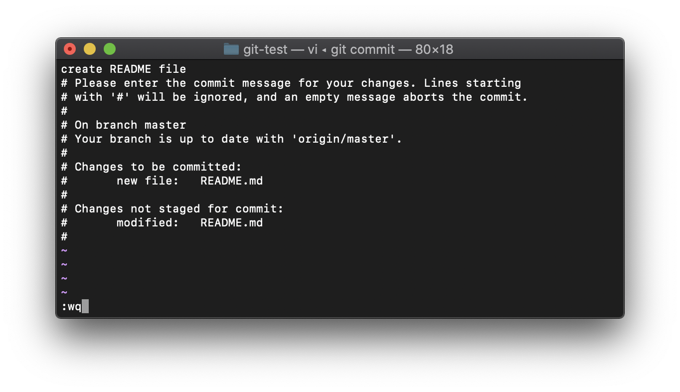 원하는 메세지를 작성하세요! ‘#’은 주석이기 때문에 # 줄의 메세지는 추가되지 않습니다.