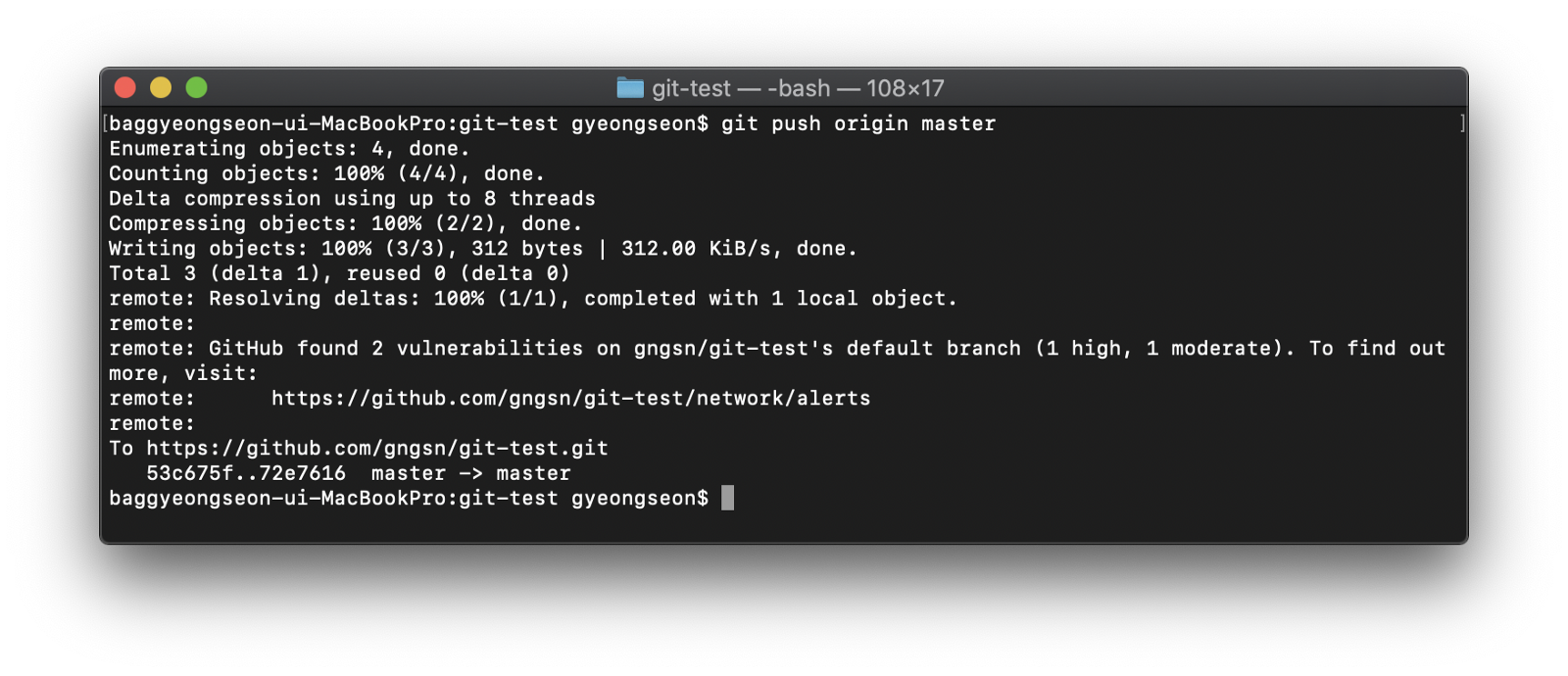 이 명령은 Clone 한 리모트 저장소에 쓰기 권한이 있어야만 실행됩니다.