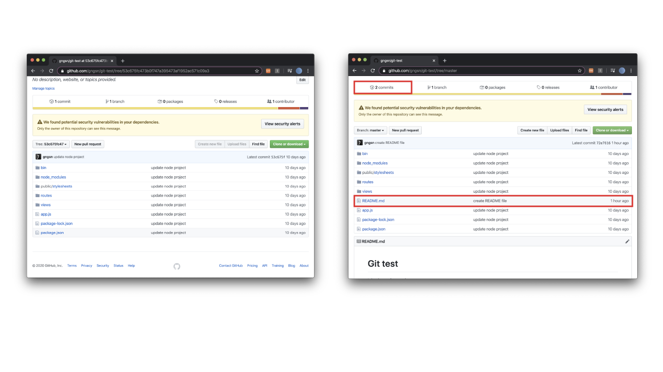 commit 의 수가 늘어나고 새로운 파일이 업데이트 된 것을 확인할 수 있어요.
