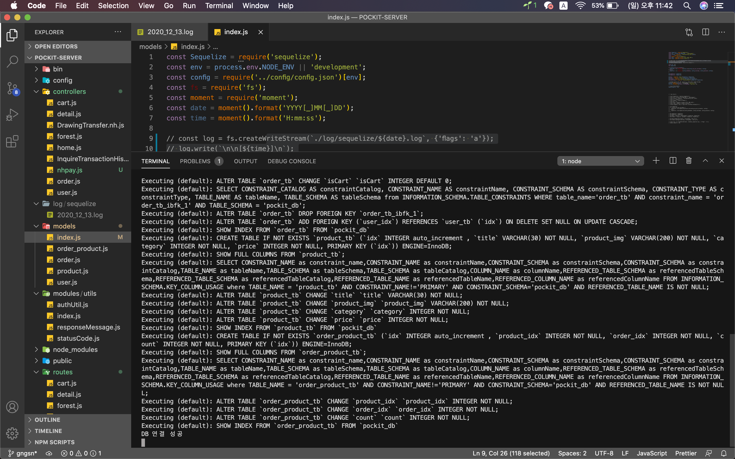 sequelize 기본 설정으로 생기는 model/index.js 파일을 열어주세요.