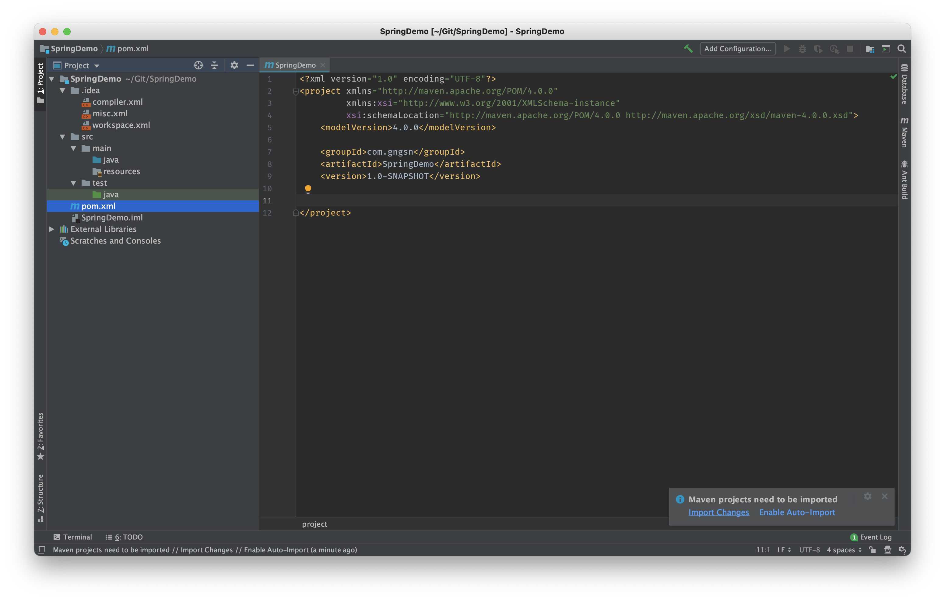 위에 뜨는 Maven projects need to be imported는 Enable Auto-import를 선택해줍시다 〰️