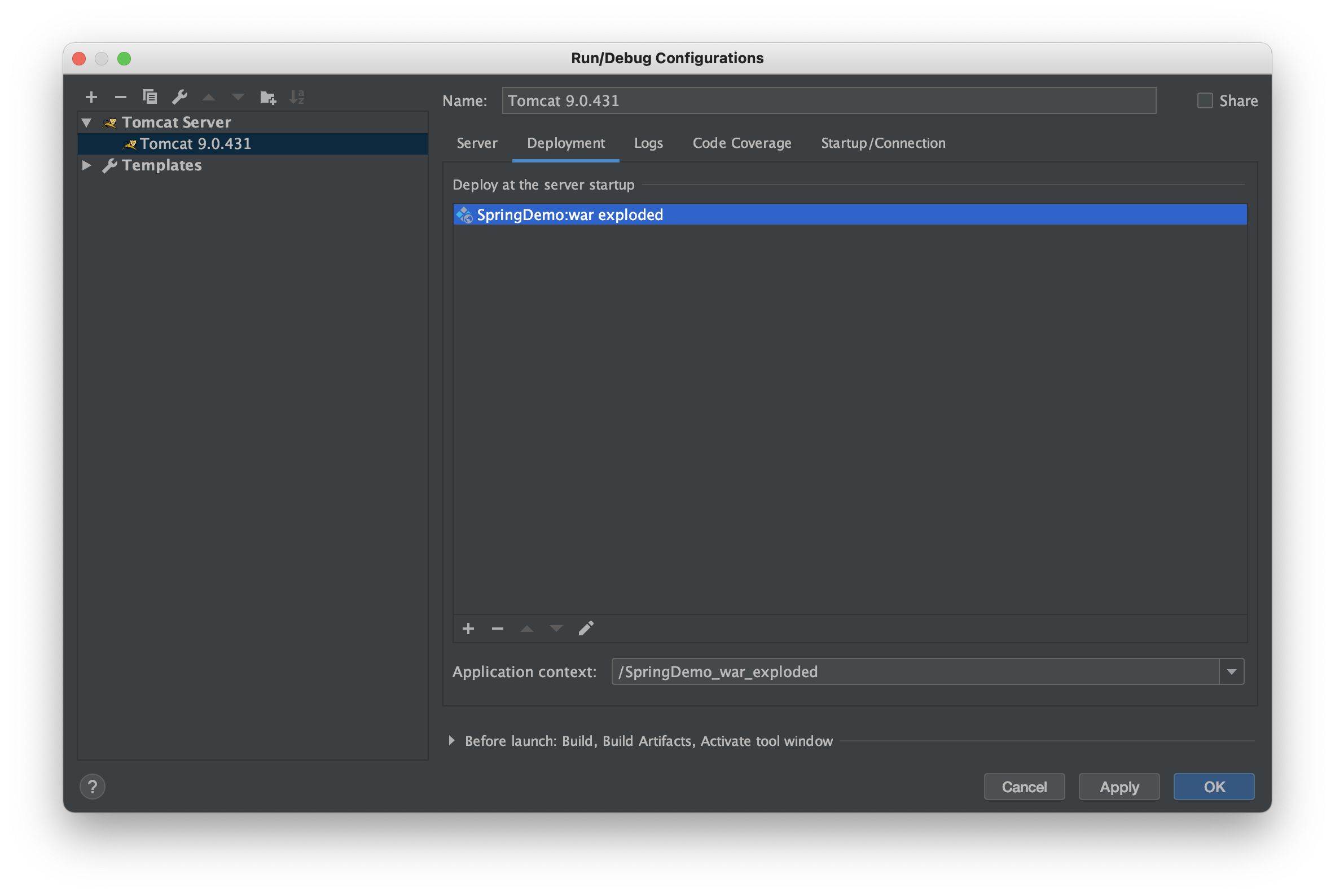 여기서 Application context 에 있는 /SpringDemo_war_exploded 를 / 로 변경해주세요!