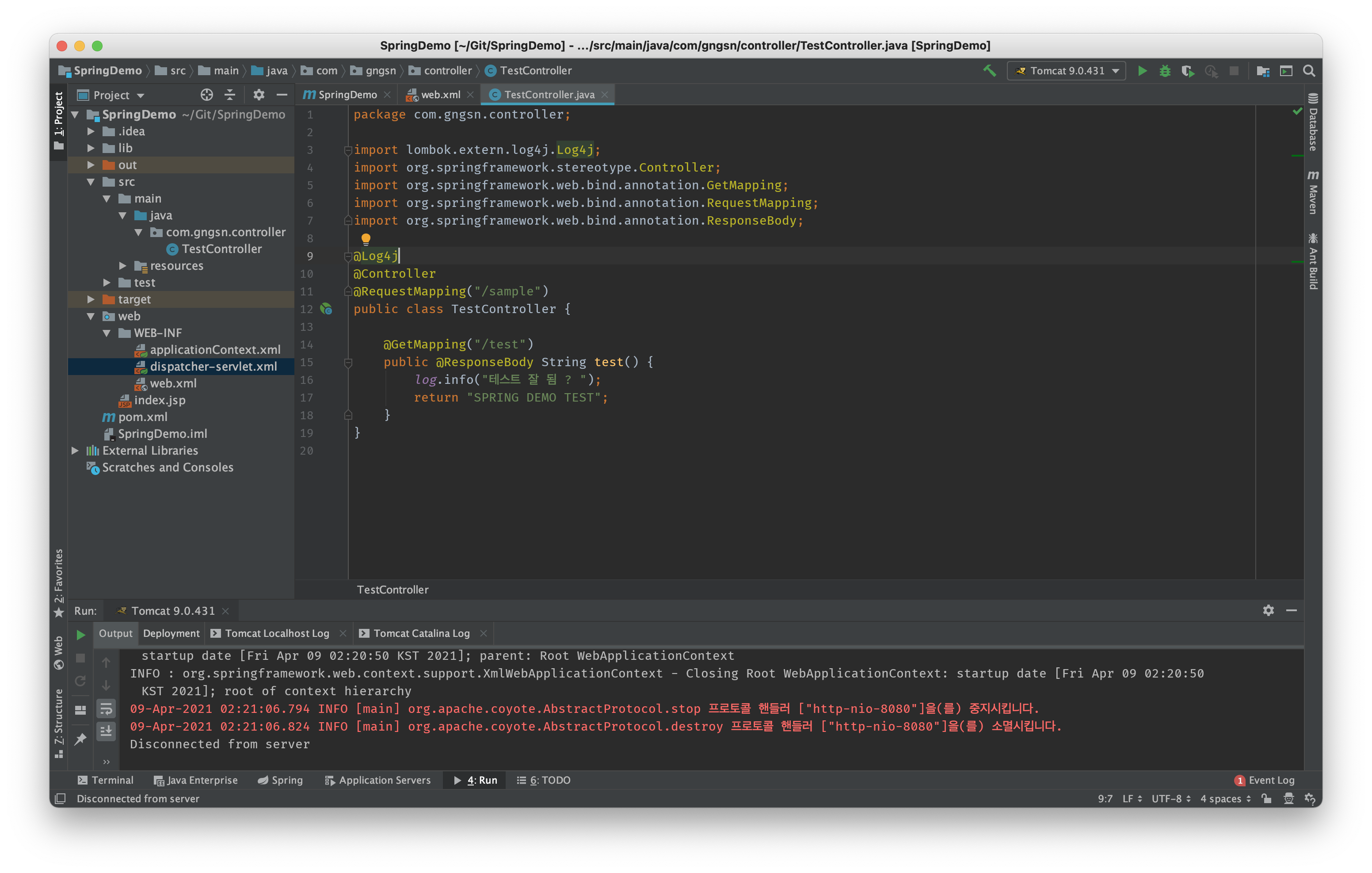 자 이제 Controller를 하나 만들어 테스트를 해보겠습니다.