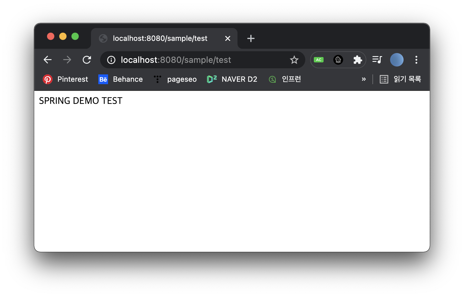 아까 반환타입으로 설정했던 SPRING DEMO TEST 도 잘 나오는 것을 확인할 수 있습니다.