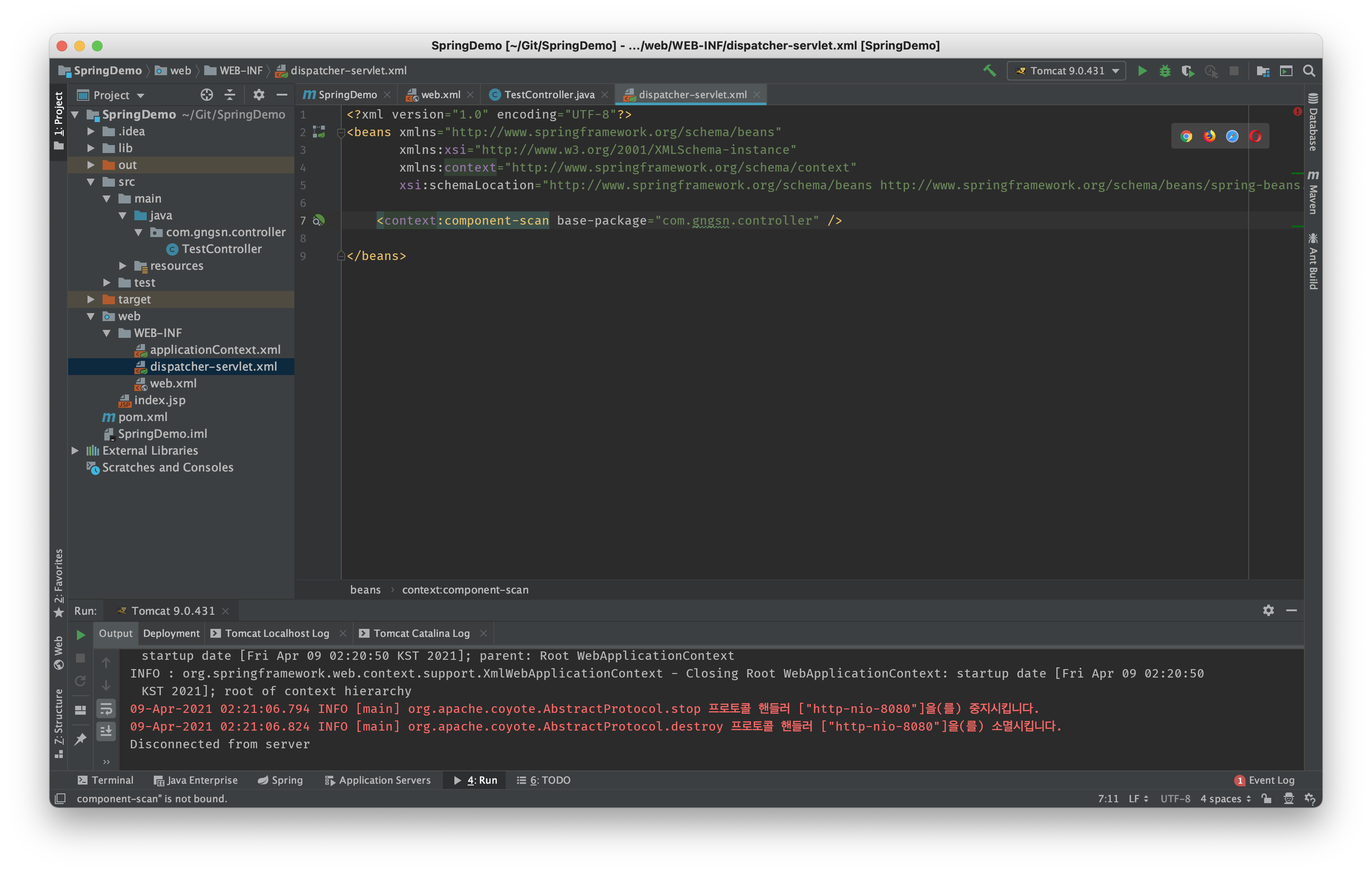 이제 마지막으로 Controller를 Bean으로 등록시켜줍니다.