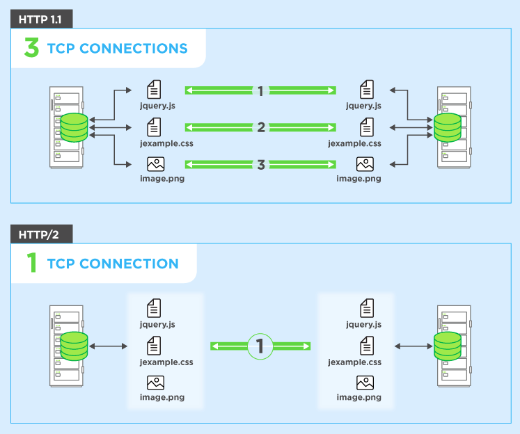 또, HTML 문서 안에 포함된 다수의 리소스 (Images, CSS, Script)를 처리하려면 요청할 리소스 개수에 비례해서 Latency(대기 시간)는 길어지게 됩니다.