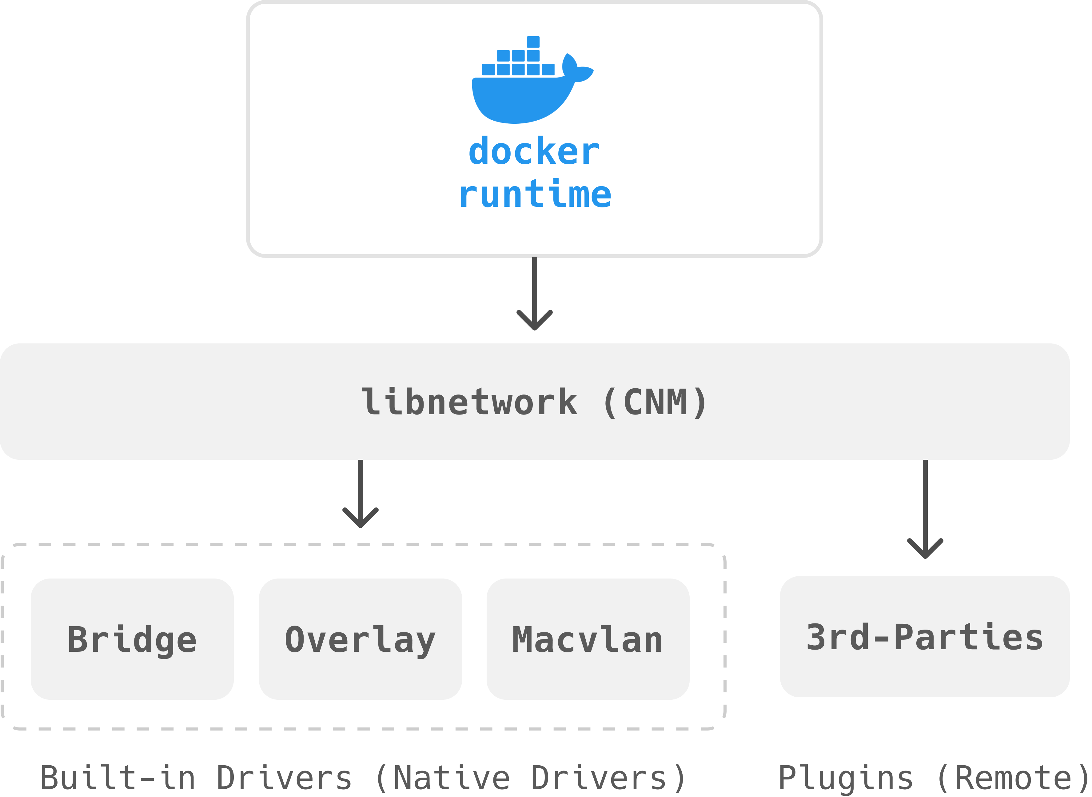 Libnetwork๊ฐ ๋คํธ์ํฌ์ ๋ํด ์ ์ดํ๊ณ ๊ด๋ฆฌํ๋ค๋ฉด ๋คํธ์ํฌ ๋๋ผ์ด๋ฒ๋ ๋ฐ์ดํฐ๋ค์ ๋ค๋ฃน๋๋ค.