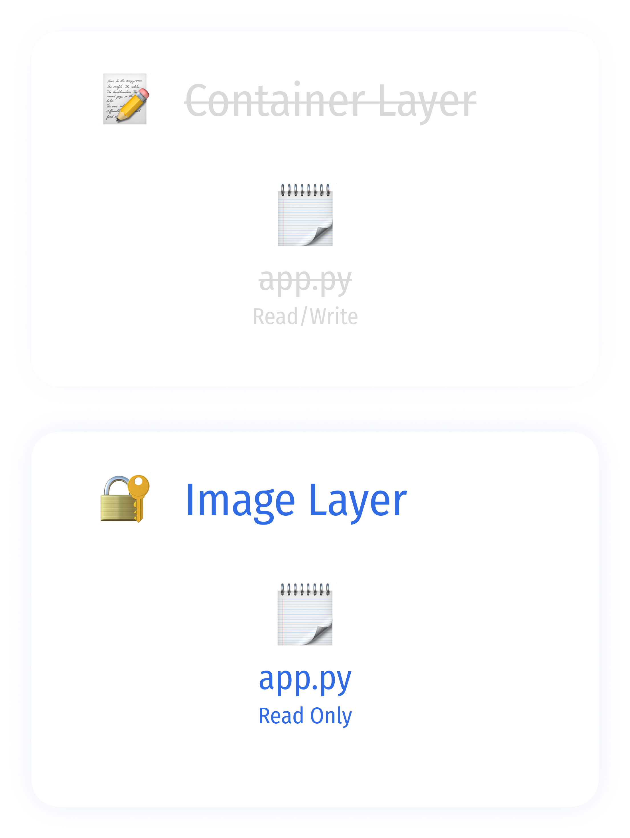 한 번 빌드된 레이어는 수정할 수 없으며, 새로운 빌드를 통해 재정의해야 합니다.
