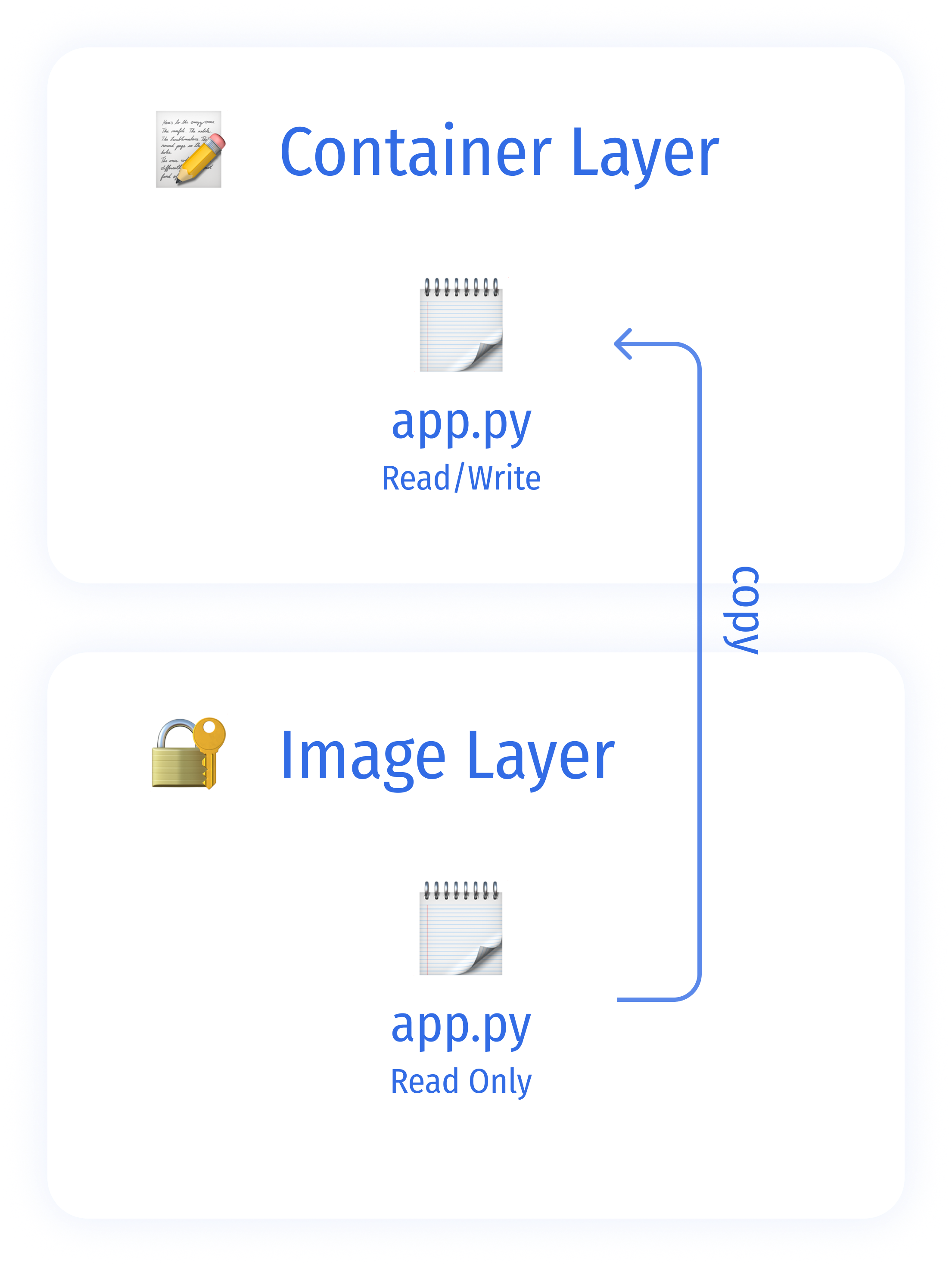 즉, 컨테이너는 이미지 레이어에서 복사해온 파일들로 초기화됩니다.